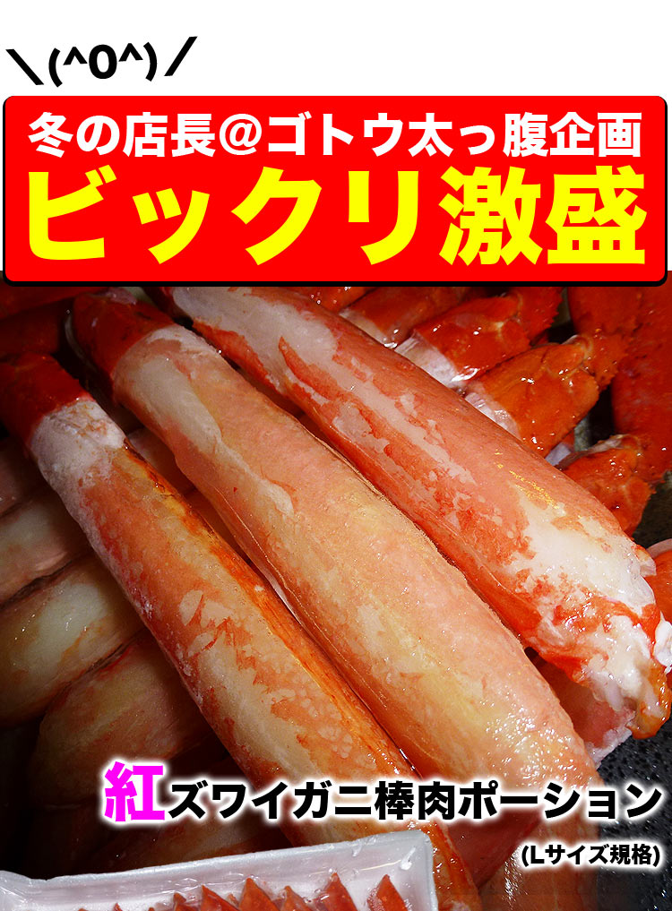 (農産品・割れ物・生の生鮮品その他、 品質に影響がでる物は例外とします) ■販売者 株式会社 丸源後藤水産 北海道旭川市忠和6条7丁目5-18 季節のご挨拶 お正月 御年賀 お年賀 御年始 母の日 父の日 初盆 お盆 御中元 お中元 お彼岸 残暑御見舞 残暑見舞い 敬老の日 寒中お見舞 クリスマス クリスマスプレゼント お歳暮 御歳暮 日常の贈り物 御見舞 退院祝い 全快祝い 快気祝い 快気内祝い 御挨拶 ごあいさつ 引越しご挨拶 引っ越し お宮参り御祝 志 進物 長寿のお祝い 還暦(かんれき) 61歳 還暦御祝い 還暦祝 祝還暦 華甲(かこう) 祝事 進学内祝い 合格祝い 成人式 御成人御祝 卒業記念品 卒業祝い 御卒業御祝 入学祝い 入学内祝い 小学校 中学校 高校 大学 就職祝い 社会人 幼稚園 入園内祝い 御入園御祝 お祝い 御祝い 内祝い 金婚式御祝 銀婚式御祝 御結婚お祝い ご結婚御祝い 御結婚御祝 結婚祝い 結婚内祝い 結婚式 引き出物 引出物 引き菓子 御出産御祝 ご出産御祝い 出産御祝 出産祝い 出産内祝い 御新築祝 新築御祝 新築内祝い 祝御新築 祝御誕生日 バースデー バースディ バースディー 七五三御祝 753 初節句御祝 節句 昇進祝い 昇格祝い 就任 弔事 御供 お供え物 粗供養 御仏前 御佛前 御霊前 香典返し 法要 仏事 新盆 新盆見舞い 法事 法事引き出物 法事引出物 年回忌法要 一周忌 三回忌、 七回忌、 十三回忌、 十七回忌、 二十三回忌、 二十七回忌 御膳料 御布施 法人向け 開店御祝い 御開店祝 開店お祝い 開店祝い 御開業祝 周年記念 来客 異動 転勤 定年退職 退職 挨拶回り 転職 お餞別 贈答品 粗品 手土産 心ばかり 寸志 新歓 歓迎 送迎 新年会 忘年会 二次会 記念品 景品 開院祝い プチギフト お土産 ゴールデンウィーク GW 帰省土産 バレンタインデー バレンタインデイ ホワイトデー ホワイトデイ お花見 ひな祭り 端午の節句 こどもの日 子供の日 ギフト プレゼント お返し 御礼 お礼 謝礼 御返し お返し お祝い返し 御見舞御礼 ここが喜ばれてます 上品 上質 高級 食べ物 銘菓 お取り寄せ 人気 食品 おすすめ インスタ インスタ映え こんな想いで・・・ ありがとう ごめんね おめでとう 今までお世話になりました いままで お世話になりました これから よろしくお願いします こんな方に お父さん お母さん 兄弟 姉妹 子供 おばあちゃん おじいちゃん 奥さん 彼女 旦那さん 彼氏 先生 職場 先輩 後輩 同僚 イベントで バーベキュー BBQ お祭り 海水浴 キャンプ 研修 旅行 行楽 花見 野外 部活 スポーツ紅ズワイガニ棒肉Lサイズ100本 (便利な20本パック×5個入り) 店長@ゴトウ 太っ腹の激盛企画!! 「かにしゃぶ」をより身近に! 寒い季節はかにしゃぶ、 バター焼きで酒のつまみ♪